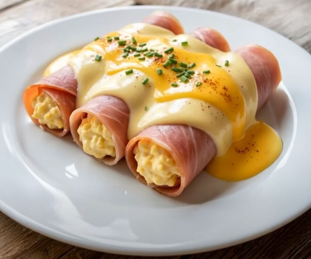 Gwiazdą tego przepisu jest idealne połączenie jajek faszerowanych i gotowanej szynki. Gładki farsz z rozgniecionych żółtek, majonezu, musztardy i szczypiorku hojnie wypełnia plastry szynki, które zwija się jak tortille. Rezultat: rozpływająca się w ustach, idealnie zbalansowana przekąska, która jest jednocześnie słodka i cierpka.