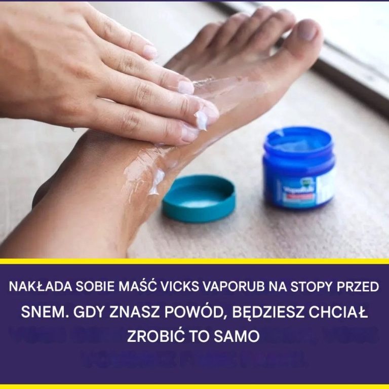 Każdej nocy, przed pójściem spać, wszyscy praktykujemy ten mały rytuał: ziołowa herbata, odrobina czytania, krem do rąk… Ale czy wiesz, że prosty, a zarazem niespodziewany gest może zdziałać cuda dla Twoich stóp (i nie tylko) w nocy? Jeśli nazwa „Vicks Vaporub” kojarzy Ci się przede wszystkim z mroźnymi zimami z dzieciństwa, poczekaj, aż odkryjesz jego nieoczekiwane korzyści po nałożeniu na stopy. Uwaga: Twoja skóra, paznokcie, a nawet nogi to docenią.
