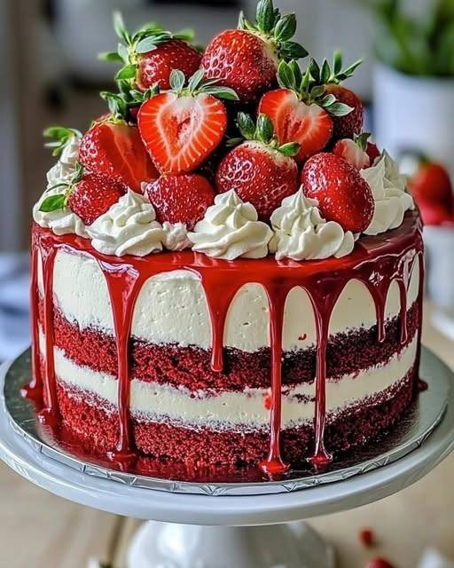 Rozkoszuj się tym luksusowo gładkim sernikiem truskawkowym, z maślanym spodem z graham cracker, aksamitnym nadzieniem z serka śmietankowego z dodatkiem puree truskawkowego i świeżą truskawkową polewą. Idealny na każdą okazję! 😍