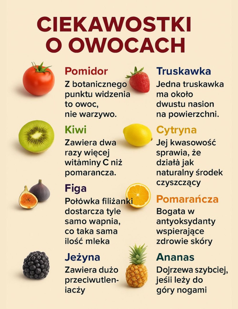 Owoce to nie tylko pyszne, ale również zdrowe i bogate w witaminy jedzenie. Każda porcja owoców przynosi coś nowego – od ciekawych faktów botanicznych do niespodzianek smakowych. Dlatego postanowiłem podzielić się z Tobą kilkoma fascynującymi informacjami o niektórych popularnych owocach, które na pewno Cię zaskoczą.