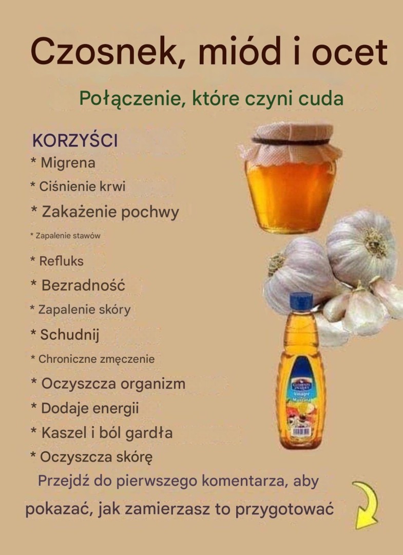Dodaj miód i ocet jabłkowy. Dokładnie wymieszaj drewnianą lub plastikową łyżką (unikaj metalowej).
