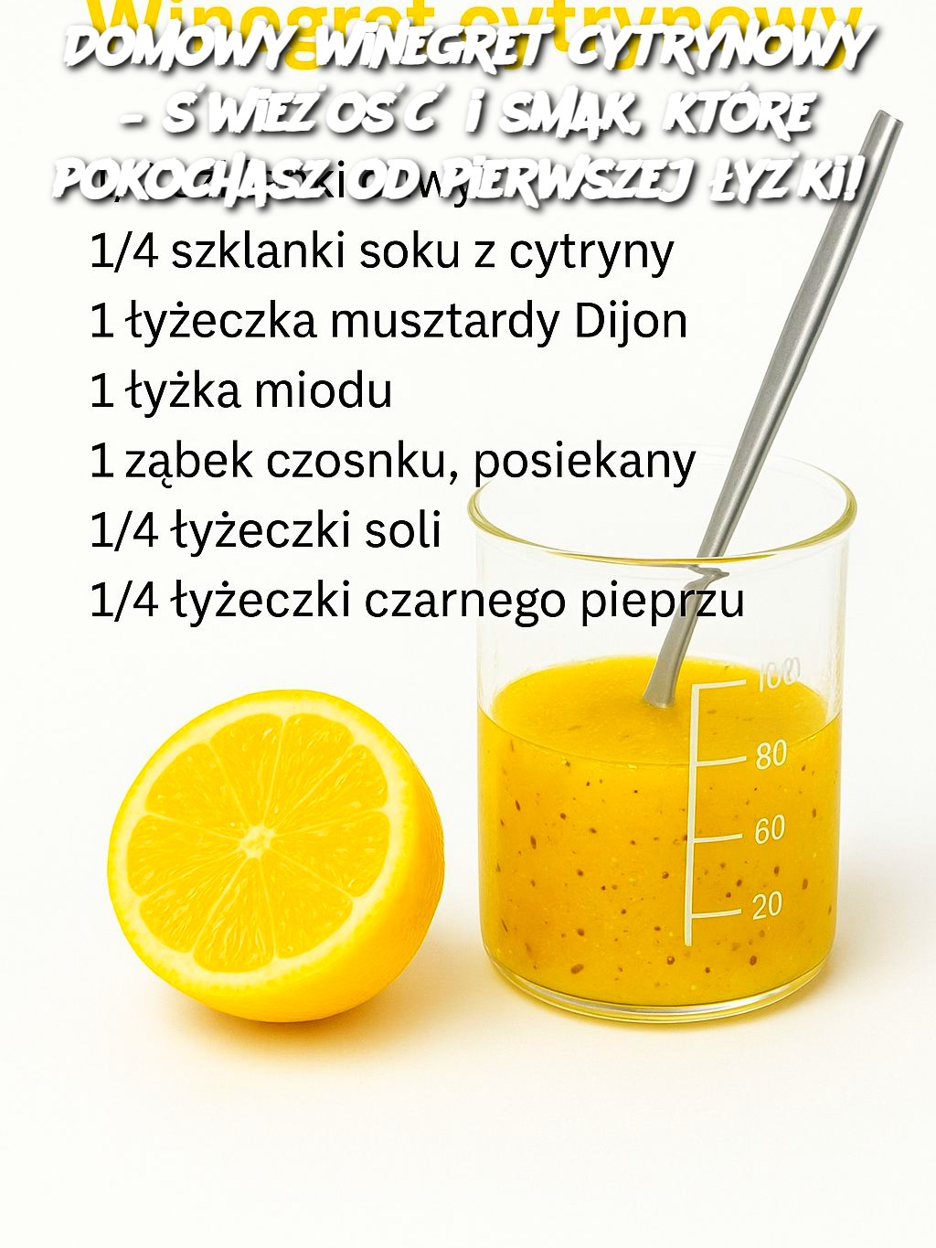 Czy wiesz, że wystarczy kilka prostych składników, aby przygotować w domu pyszny, lekki i aromatyczny sos winegret? Ten cytrynowy klasyk idealnie sprawdzi się nie tylko do sałatek, ale także jako marynata do mięsa czy dodatek do grillowanych warzyw. A co najważniejsze – jest zdrowszy i smaczniejszy niż gotowe sosy ze sklepu!