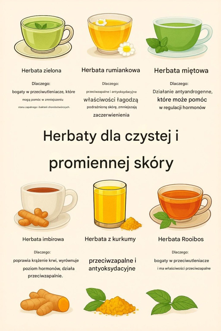 Herbata nie tylko koi — to potężny naturalny środek na uzyskanie czystszej, zdrowszej skóry. Oto lista herbat wraz ze składnikami, podstawowymi przepisami i tym, dlaczego są tak korzystne: