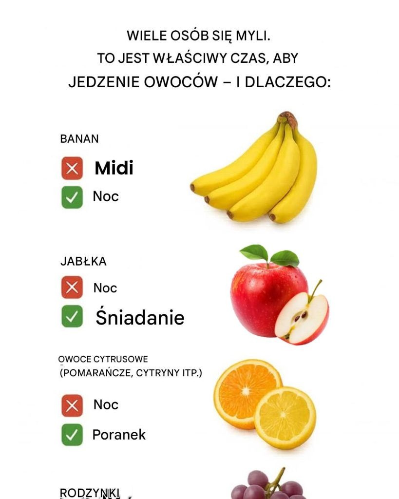 Często słyszymy tę radę: „Jedz 5 owoców i warzyw dziennie!”. Tak, ale o której porze dnia? Ponieważ, choć owoce są doskonałe dla zdrowia, ich wpływ na trawienie, energię i sen różni się w zależności od pory dnia. W rezultacie, spożycie korzystnego owocu o niewłaściwej porze dnia może czasami zaburzyć funkcjonowanie organizmu. Oto idealne pory na jedzenie 15 popularnych owoców… i dlaczego może to mieć znaczenie.
