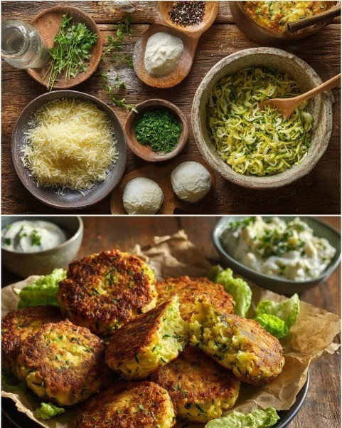 1️⃣ Zetrzyj cukinie na tarce o grubych oczkach, posól i odstaw na 15 minut, by puścił sok. Dokładnie odciśnięty przez gazę lub ręcznik papierowy.