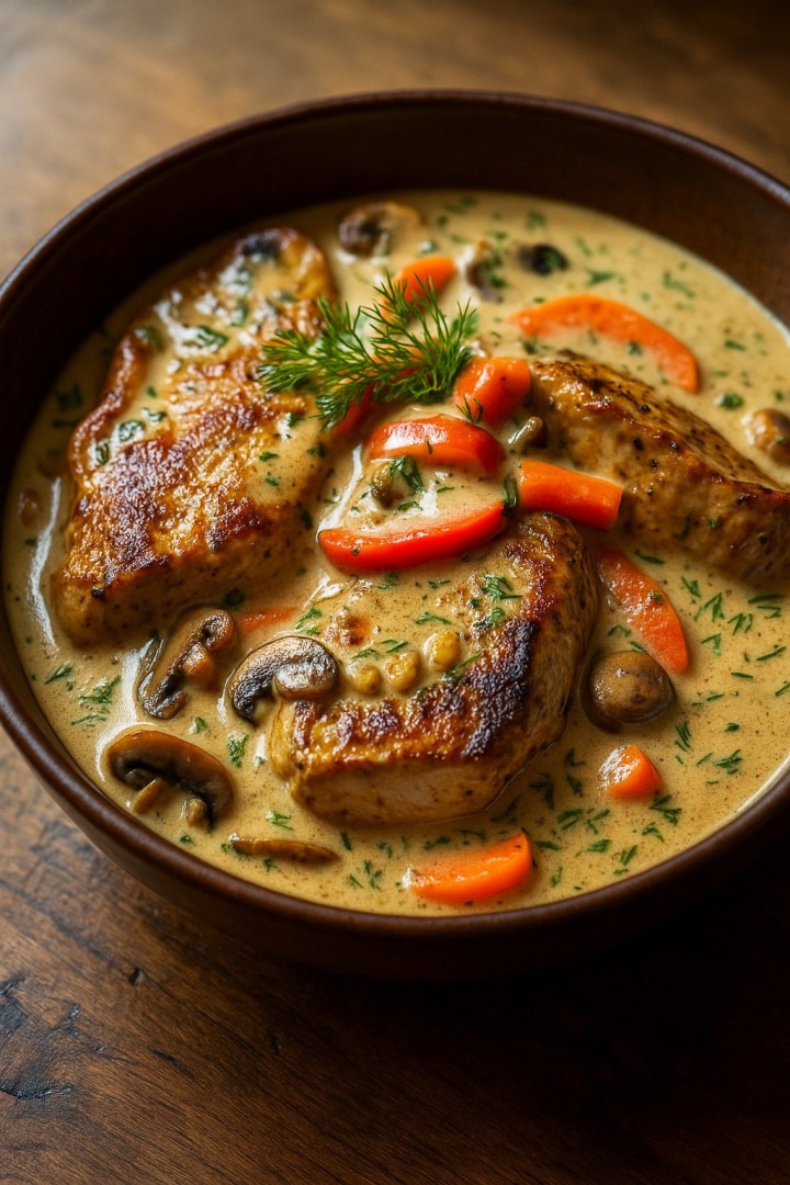 Szukasz głównego dania, które łączy soczyste kotlety , śmietanowy sos z nutą leśnych grzybów i aromatyczne warzywa? Kotlety wieprzowe w sosie śmietanowo-grzybowym to idealny wybór – przepis rodzinny, który świetnie sprawdzi się na obiad, kolację czy jako poczęstunek dla bliskich.