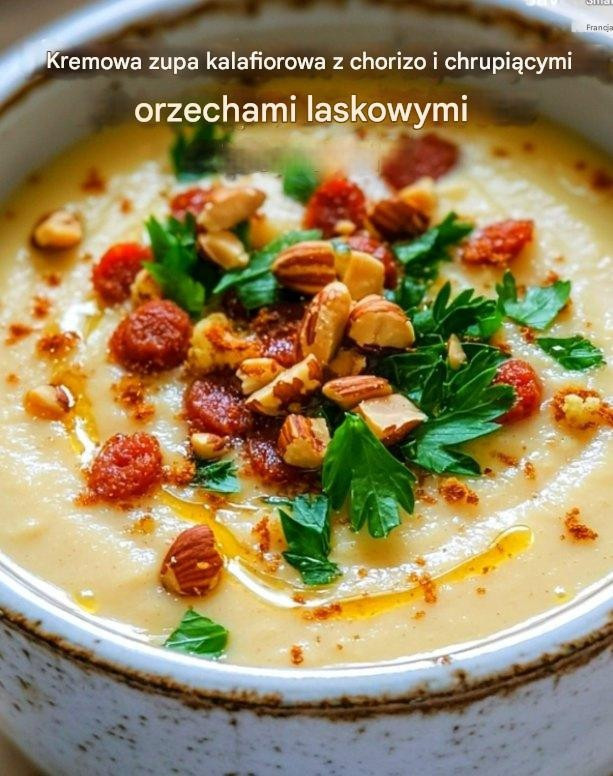 Kremowa zupa kalafiorowa z chorizo ​​i orzechami laskowymi Link znajdziesz w komentarzu… See more