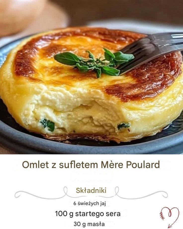 Legendarny omlet z sufletem firmy Mère Poulard🥚 Składniki (dla 4 osób)6 świeżych jajek100 g startego sera (Emmentaler, Comté lub Gruyère)30 g masłaSól, pieprz Następny→