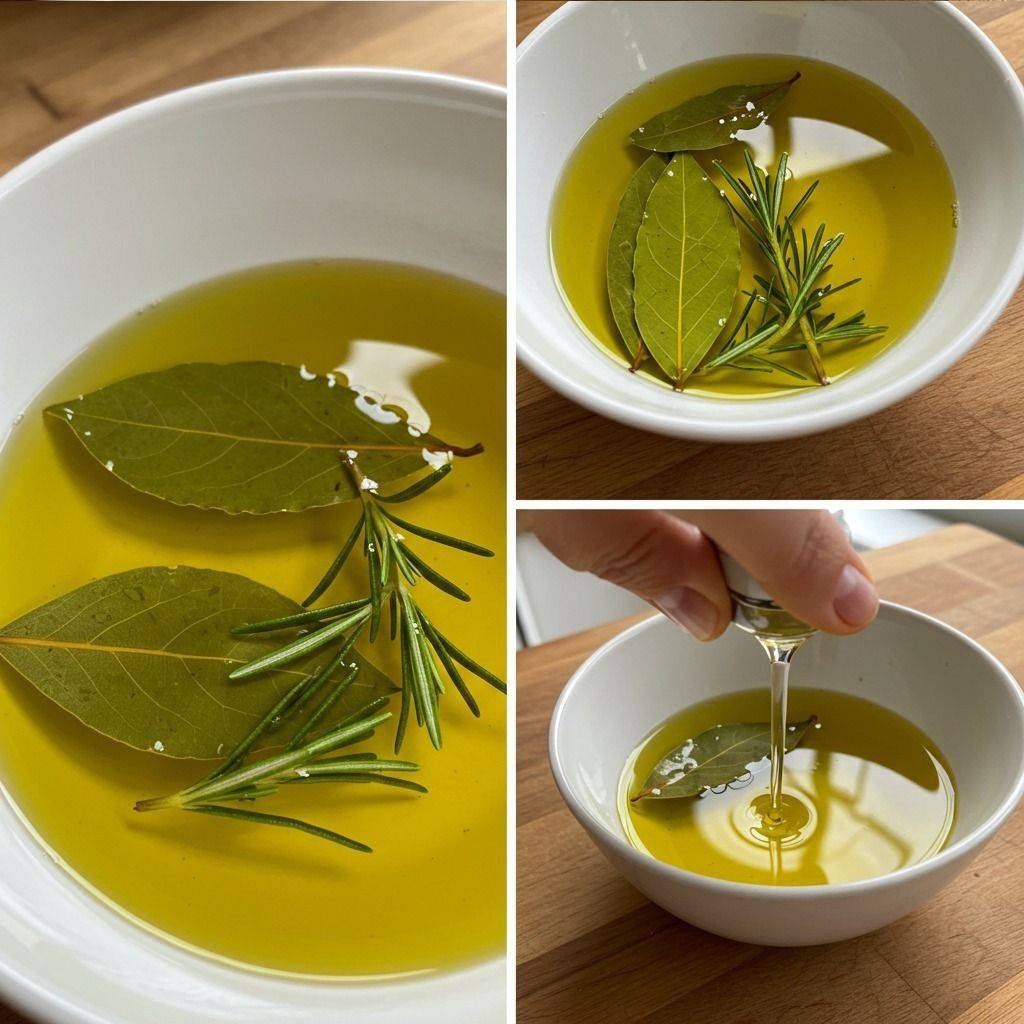 Wzmocnij oliwę z oliwek liściem laurowym i rozmarynem.
