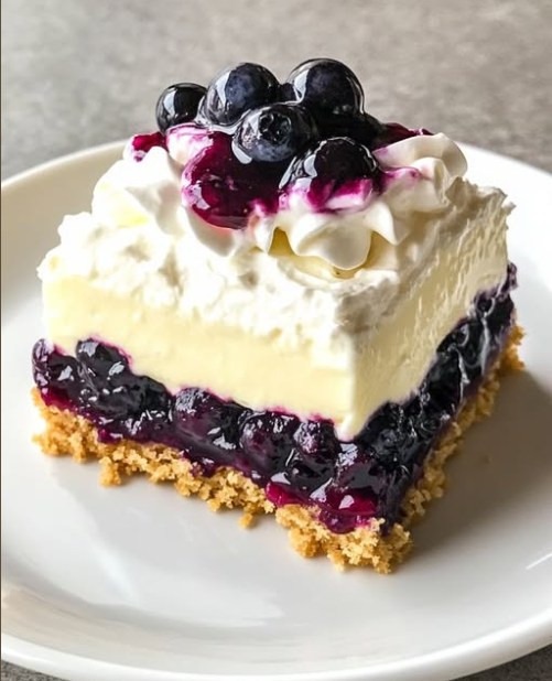 Niebiańska rozkosz – kremowy deser z borówkami na chrupiącym spodzie