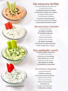 Przepisy 1. Dip warzywny Buffalo 8 uncji serka śmietankowego, zmiękczonego ½ szklanki śmietany lub jogurtu greckiego ½ szklanki sosu Buffalo Hot (takiego jak Frank’s RedHot) 1/2 szklanki startego sera cheddar ½ łyżeczki czosnku w proszku ½ łyżeczki cebuli w proszku ¼ łyżeczki wędzonej papryki ¼ szklanki pokruszonego sera pleśniowego 2 łyżki posiekanej zielonej cebulki (do … Read more