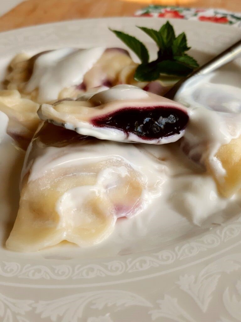 Serwowanie: Pierogi z jagodami można podać w tradycyjny sposób – polane stopionym masłem i posypane cukrem pudrem. Doskonale smakują również z bitą śmietaną lub jogurtem naturalnym. Możesz również dodać świeżo posiekane zioła, takie jak mięta, które wprowadzą odrobinę orzeźwiającego smaku.