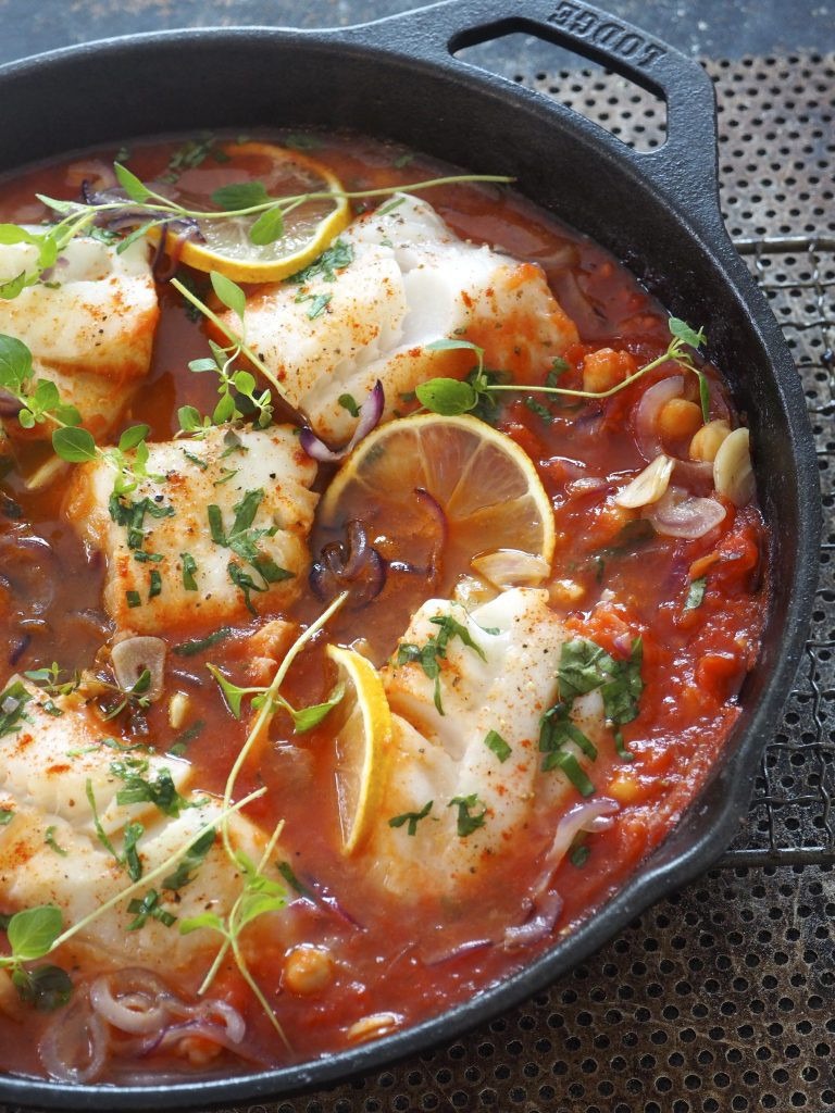 Prosty dorsz z ciecierzycą w sosie pomidorowym – 4-6 porcji