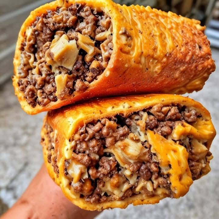 Klasycznymi składnikami tej kanapki są drobno zmielona wołowina, roztopiony ser i podsmażona cebula, wszystko zawinięte w miękkie, francuskie ciasto.