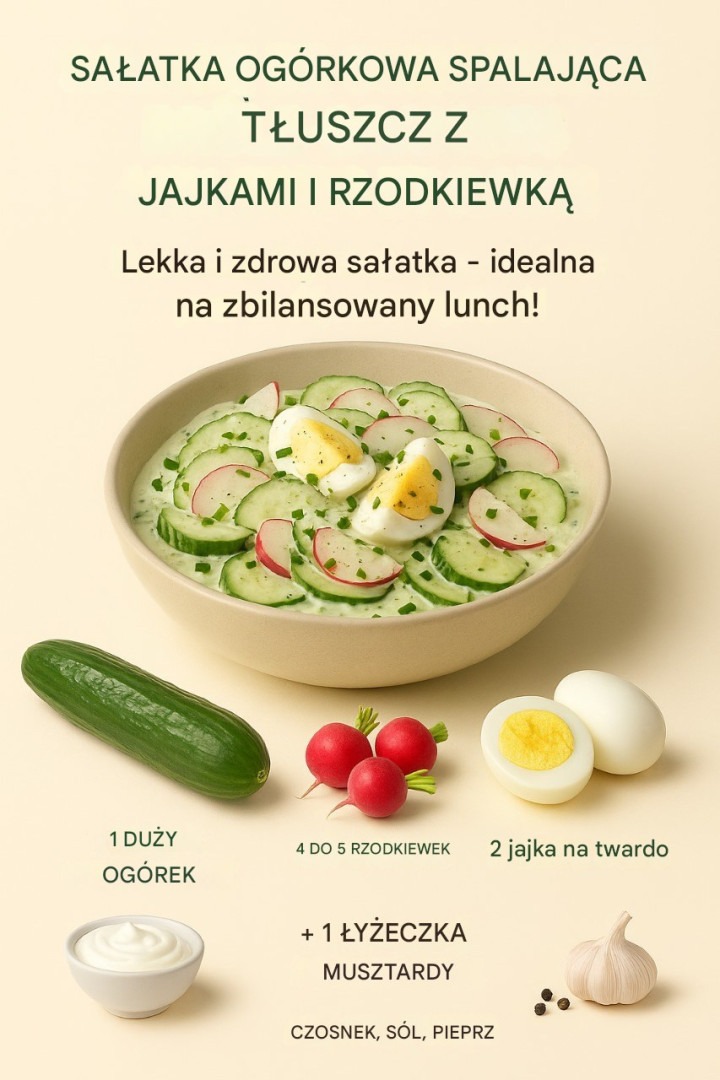 Szukasz sałatki, która wzbogaci Twoje danie o świeżą nutę , a jednocześnie pomocna w spalaniu tłuszczu? Sałatka ogórkowa z jajkiem i rzodkiewką to właśnie taki przepis – lekka, pełna smaku, ale również bogata w składniki wspierające metabolizm i trawienie . Idealna na lunch, kolację lub jako dodatek do pieczywa domowego.
