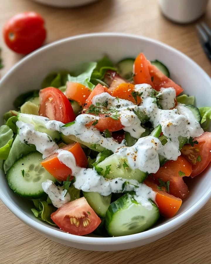 Sałatka z pomidorów i ogórków z sosem jogurtowym