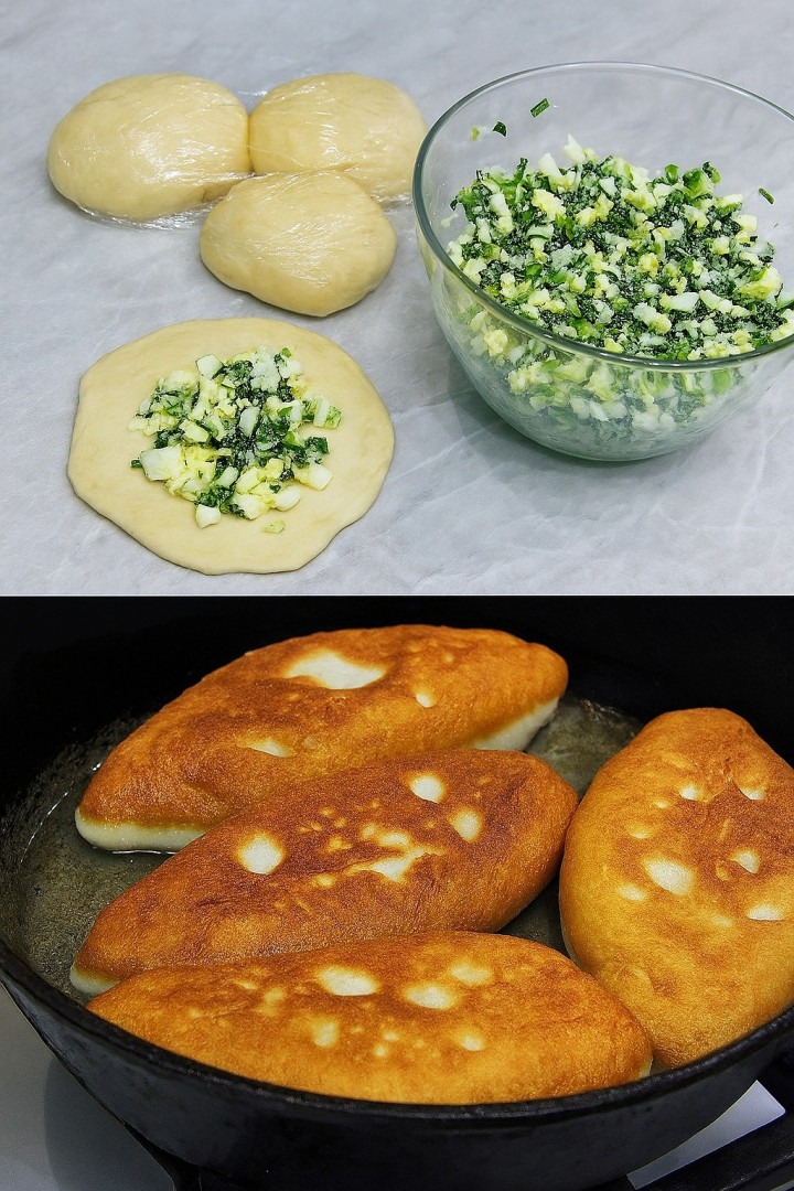 Smażone naleśniki z dymką i jajkiem (ciasto parzone)