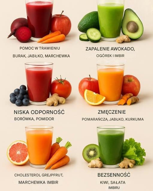 Wspieraj swoje zdrowie tymi mocnymi, naturalnymi mieszankami soków. Każda z nich koncentruje się na konkretnym problemie, wykorzystując codzienne owoce i warzywa.