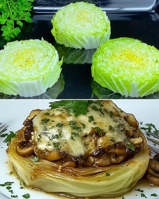 Zamień swoją codzienną kapustę w niezwykły posiłek o niskiej zawartości węglowodanów dzięki tym delikatnym i soczystym stekom z kapusty pekińskiej. To innowacyjne danie łączy w sobie subtelną słodycz kapusty z wytrawnym nadzieniem z kurczaka i grzybów, zwieńczone roztopionym serem. To zdrowa i treściwa kolacja.