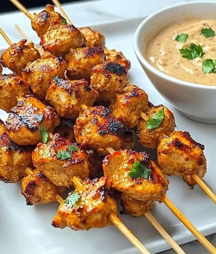 Szaszłyki z kurczaka w sosie curry tajskim z kremowym sosem kokosowo-orzechowym