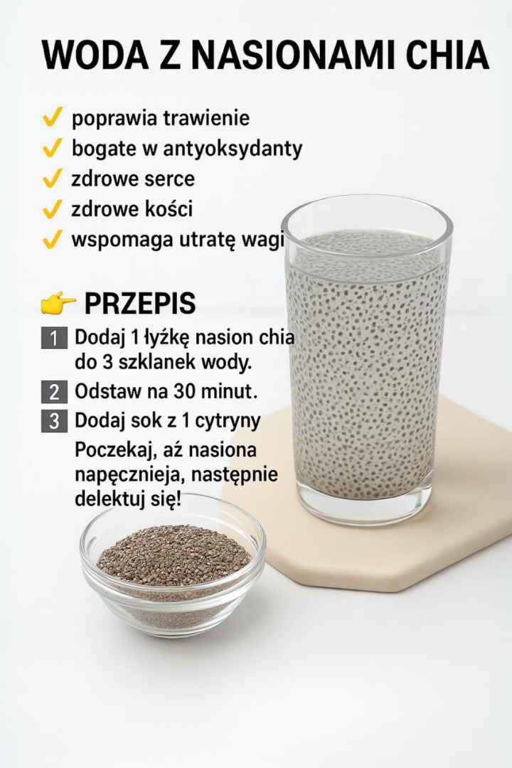 Czy szukasz prostego napoju, który nie tylko ugasi pragnienie, ale też dostarczy Twojemu organizmowi mnóstwo cennych składników odżywczych? Woda z nasionami chia to lekki i zdrowy wybór, pełen mocy i naturalnych właściwości. ✨