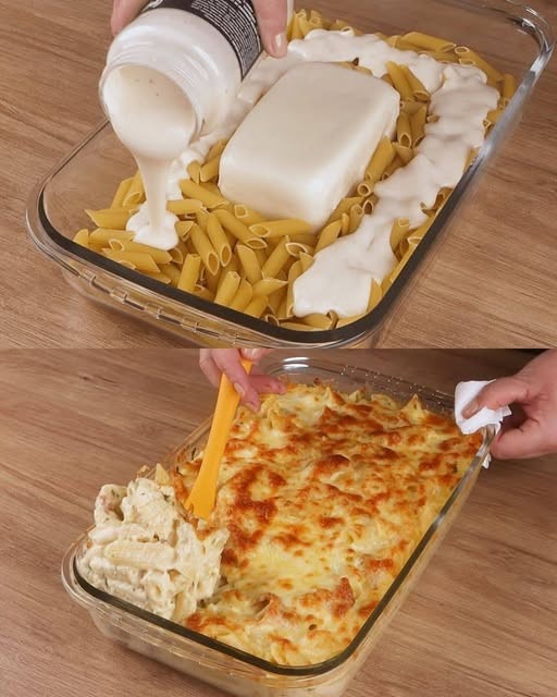 Instrukcje przygotowania kremowego zapiekanego makaronu penne z kurczakiem Alfredo