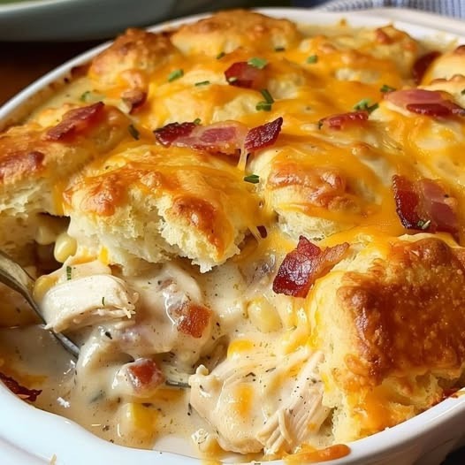 Ta pyszna zapiekanka z kurczakiem i biszkoptami do kwintesencji domowej, komfortowego karmienia. Wyobraź sobie soczyste, funkcjonalne, kawałki kurczaka w pikantnej mieszance sosu ranch z boczkiem, przykryte miękkimi, złocistymi i chrupiącymi biszkoptami. Porcja skrywa w sobie rozpływające się kawałki sera, które rozbudzą w Tobie ochotę na więcej. Wytrawne, bogate, wyraziste i pyszne smaki tego prostego dania są idealne. Idealny posiłek dla całej rodziny.