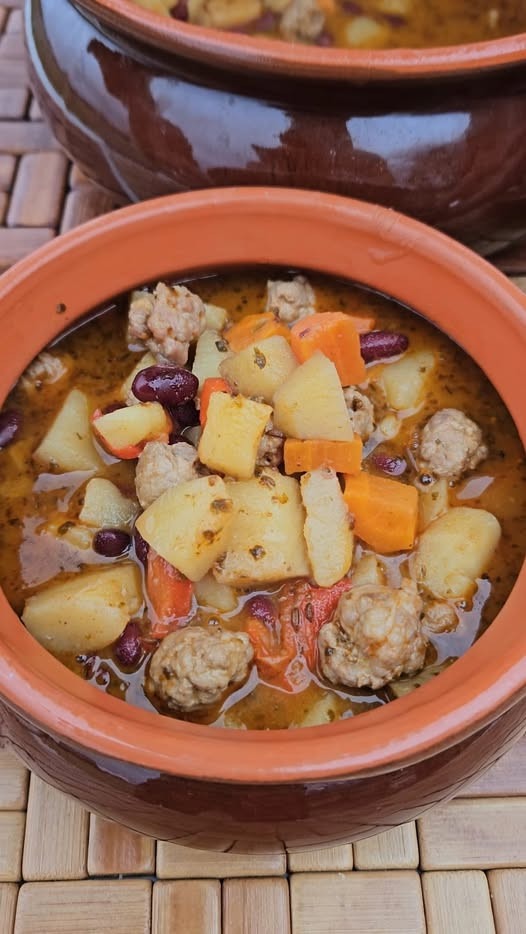Gotowanie zupy: Gotuj całość na średnim ogniu przez około 45 minut, aż warzywa i mięso staną się miękkie, a smaki się połączą.